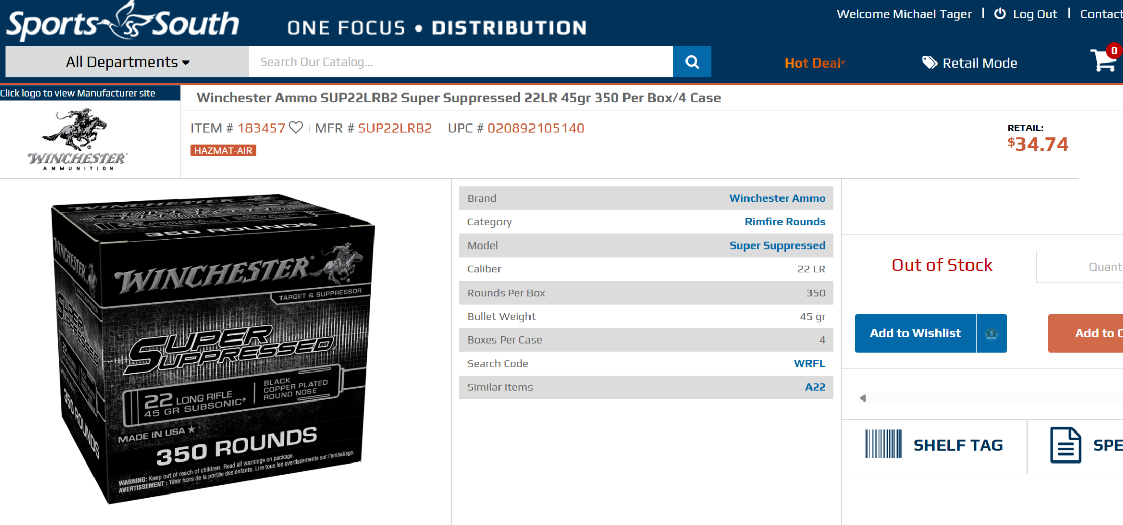 | Manufacturer Part # | SUP22LRB2 | Model | Rimfire |