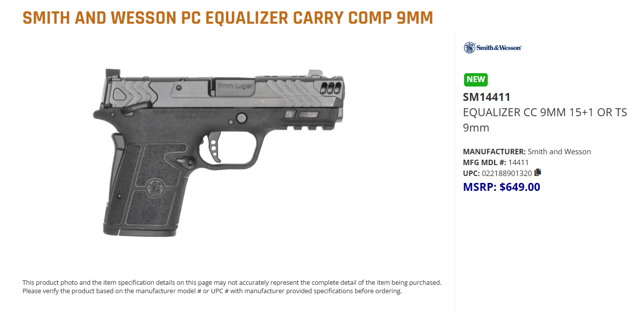 NEW S&W Smith and Wesson PC Equalizer Carry Comp 9mm 14411