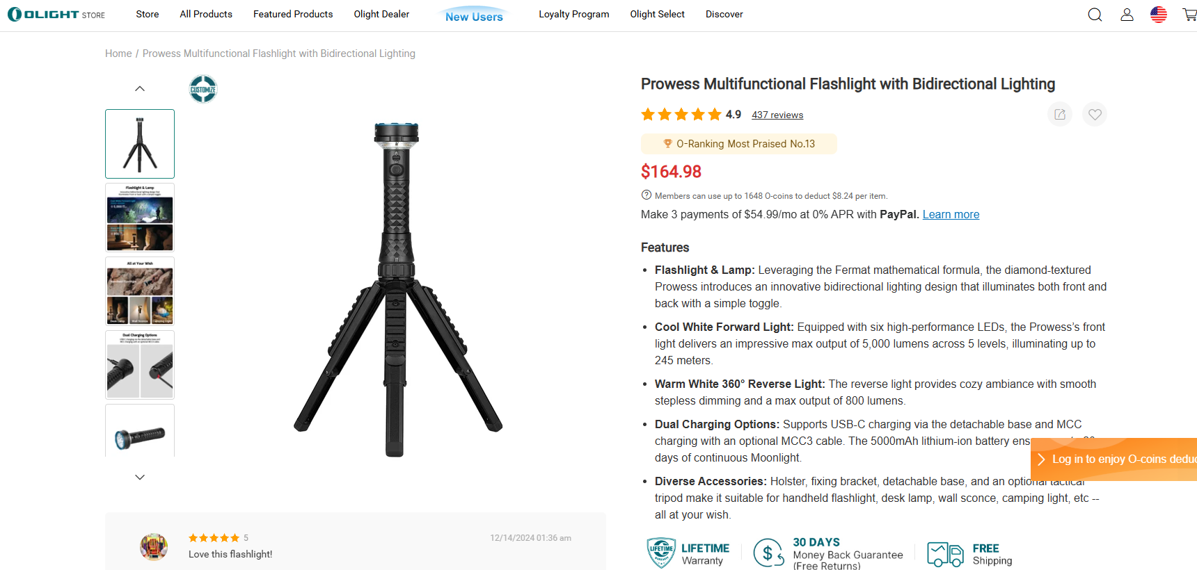 Olight Prowess Multifunctional Flashlight with Bidirectional Lighting