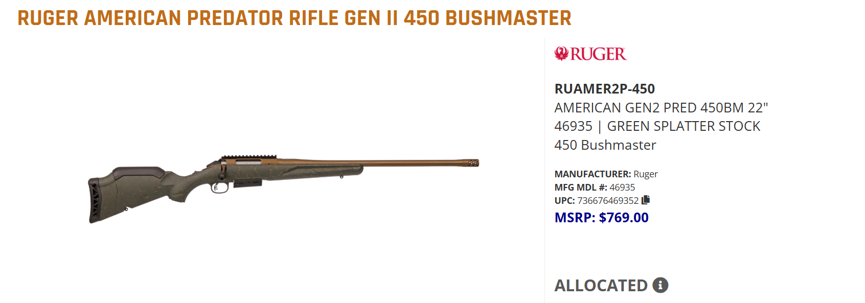 Ruger American Predator Rifle Gen II 450 Bushmaster