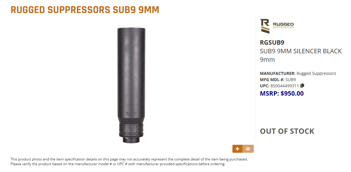 RUGGED SUB9 9MM SILENCER BLACK 9311